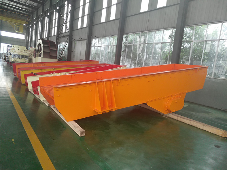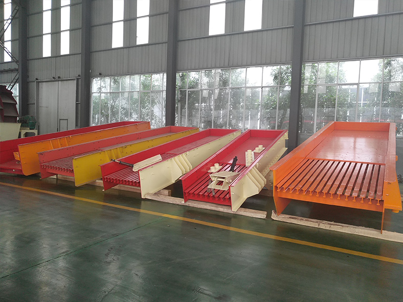 本公司生产的喂料机系列分为激振式喂料机与直线式喂料机两种。激振式喂料机系列采用两台激振式电机,用户可自由调整喂料机的振动频率,从而完全控制石料的喂料速度,保证整条生产线的顺畅运行。直线振动式给料机,具有振动平稳,工作可靠,寿命长等特点。可为碎石机械连续、均匀喂料,并对物料进行粗筛分。广泛应用于选矿、建材、硅酸盐和化学工业中的碎石、筛分联合设备中。