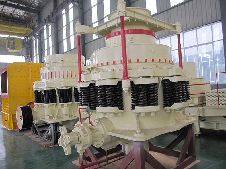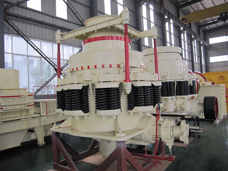 弹簧圆锥破碎机即是早的一种圆锥破碎机,由研制的一种大功率、大破碎比、高生产率的破碎机。该机是在消化吸收了各国具有80年代各类型圆锥破碎机的基础上研制成的。它与传统的圆锥破碎机的结构在设计上显然不同,并集中了迄今为止已知各类型圆锥破碎机的主要优点。